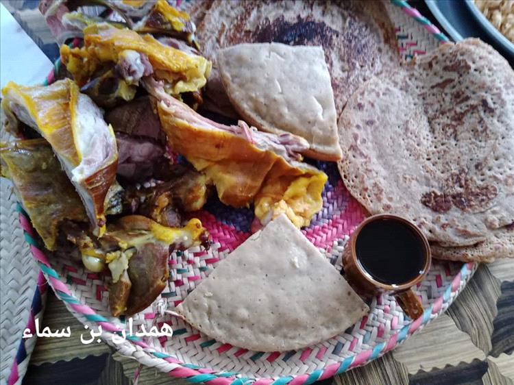 #الصور من وجبة العشاء عصر اليوم والمكون من خبز الذرة البيضاء (الخمير بالطريقة الحديثة) وخبز الطهف الاسود و لحم العيد و القهوة.