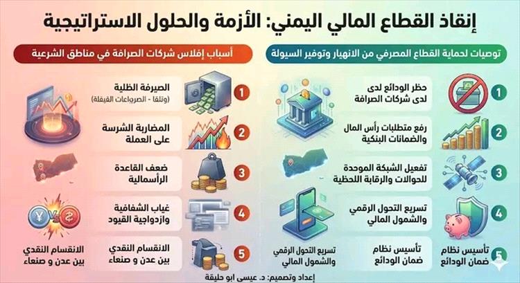 إن إنقاذ القطاع المصرفي في اليمن يبدأ من سحب وظائف البنوك من الصرافين وإعادتها للبنوك، مع تحديث هذه البنوك تقنياً لتواكب احتياجات السوق في 2026. بدون هذه الخطوة الجريئة، ستظل أموال المودعين وقوداً للمضاربة بالعملة.