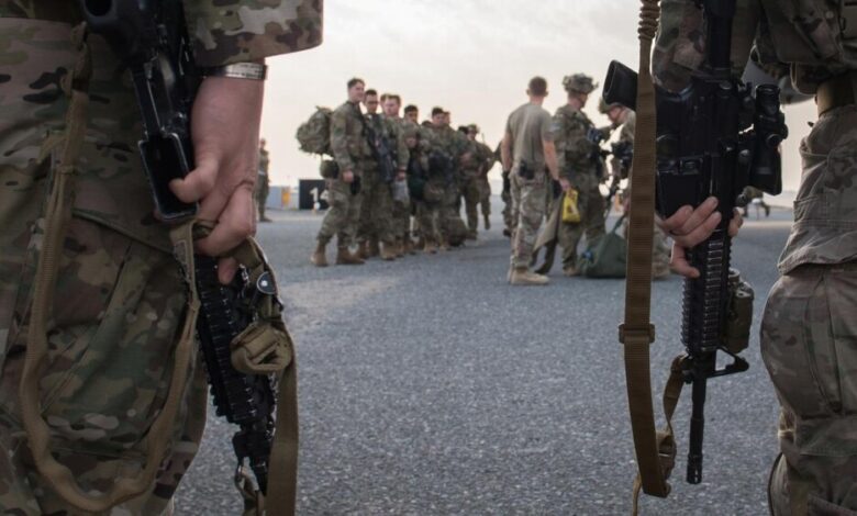 جنود أمريكيون من الفرقة 82 المحمولة جوا لدى وصولهم إلى قاعدة بالكويت يوم الثاني من يناير كانون الثاني 2020. صورة من الجيش الأمريكي.