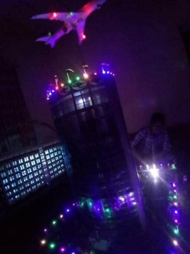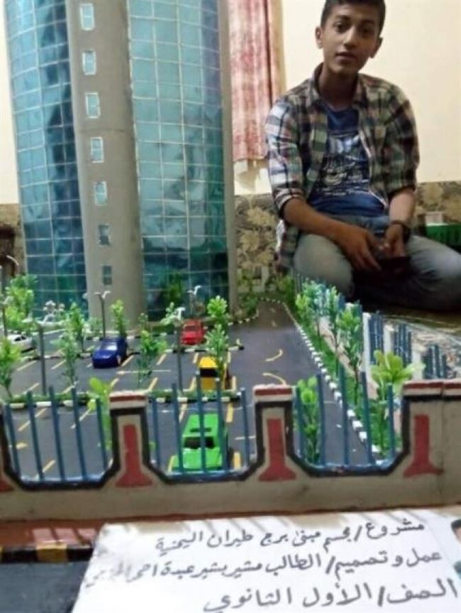 استكمل الشاب اليمني مشير بشير الحزمي مشروع إبداعه في مجسم لمبنى برج طيران اليمنية