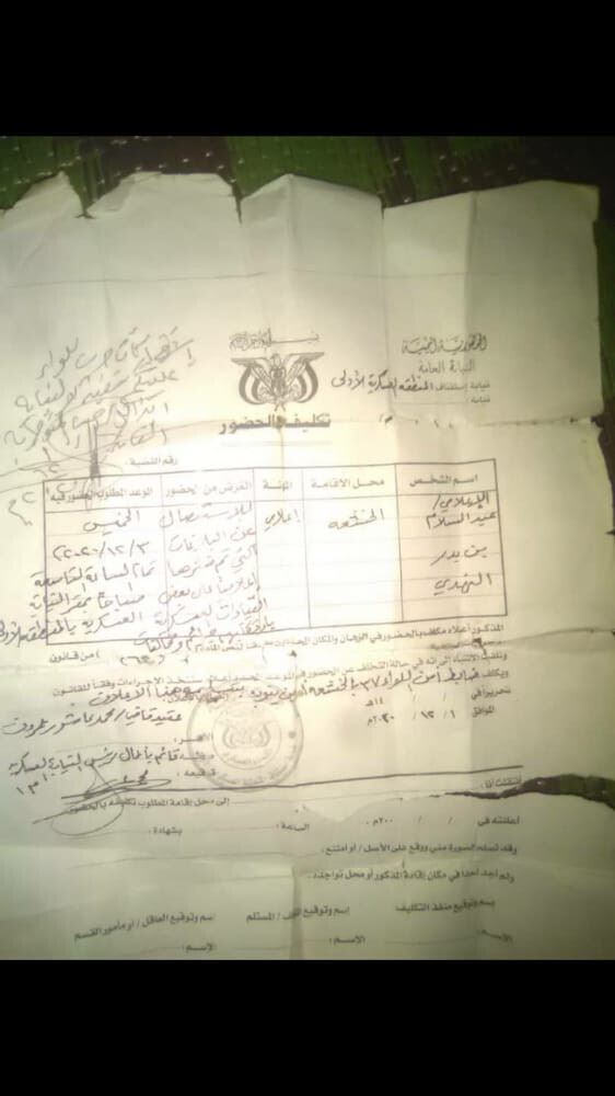 ناشط حضرمي يطالب برفع بلاغ النيابة العسكرية عليه والعودة الى منزله بسيئون
