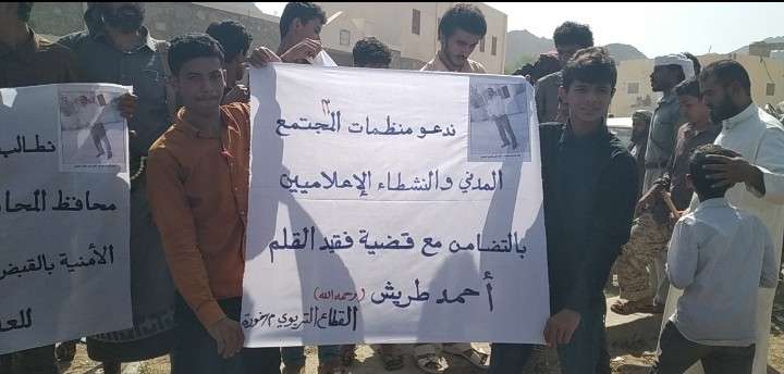 اصدرا القطاع الطلابي والتربوي بخورة محافظة شبوة في الوقفة الاحتجاجية اليوم بيان هام لقضية مربي الاجيال شهيد القلم أحمد طريش