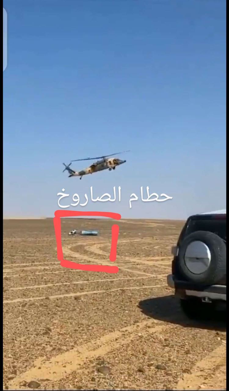 وأرفق الذهب، صورة لحطام أحد الصواريخ سقط في صحراء المدورة جنوبي الأردن.