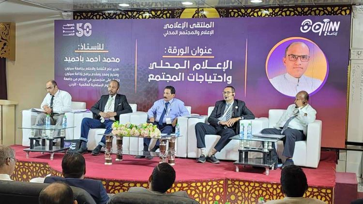 نظمت إذاعة سيئون صباح اليوم الخميس الملتقى الإعلامي بعنوان ( الإعلام و المجتمع المحلي ) ضمن احتفالاتها بذكرى تأسيسها الخمسين ( اليوبيل الذهبي )برعاية محافظ محافظة حضرموت الأستاذ مبخوت مبارك بن ماضي ووكيل محافظة حضرموت لشؤون مديريات الوادي والصحراء الأستاذ عامر سعيد العامري.قدمت في الملتقى الذي شارك فيه عدد من الإكاديميين والإعلاميين من داخل الوطن عشر اوراق عمل علمية تناولت الورقة الاولى الإعلام بوصفه علاقة تكاملية مع هيئات المجتمع المحلي قدمها الدكتور محمد علي ناصر عميد كلية الاعلام بجامعة عدن'فيما قدم الأستاذ هشام علي السقاف مستشار اذاعة سيئون الورقة الثانية حول دور الإعلام في المجتمع المحلي .والورقة الثالثة قدمتها الدكتورة دعاء سالم باوزير مدير عام إذاعة المكلا حول الإعلام وتمكين المرأة 'فيما استعرض الأستاذ محسن عمر علي مدير عام إذاعة شبوه تجربة الإذاعات المحلية في تناول قضايا المجتمع .وتناول الدكتور احمد سالمين منصور رئيس قسم الإعلام بكلية الآداب جامعة حضرموت ورقة عمل بعنوان انفتاح الجامعات المحلية على الإعلام 'وتناول الدكتور عبدالقادر عبد الرحمن بن شهاب أستاذ الإعلام بجامعة عدن و سيئون في ورقة العمل السادسة الإعلام وتكنولوجيا الاتصال والذكاءالاصطناعي .فيما قدم الاعلامي قاسم عبد القادر الحاتم معد ومقدم برامج بإذاعة المهرة الورقة السابعة والموسومة الرضا الوظيفي لدى الإعلاميين وتحسين معيشتهم 'وأستعرض الأعلامي محمد احمد ياسين معد ومقدم برامج بإذاعة سيئون في الورقة الثامنة دور الإعلام المحلي واحتياجات المجتمع . وتناول الأستاذ سالم ناصر مثنى نائب مدير عام إذاعة مارب في الورقة التاسعة الإعلام واهتماماته بالثقافة الإسلامية .وقدم الاعلامي عبدالقادر حسين الحبشي معد ومقدم برامج بإذاعة سيئون الورقة العاشرة والأخيرة والتي حملت عنوان الإعلام منبر لتوصيل صوت الشباب .وتخلل تقديم اوراق العمل نقاشات ومداخلات من قبل المشاركين في الملتقى من الإعلاميين والمهتمين.وخرج الملتقى بجملة من التوصيات التي من شأنها الإسهام في الإرتقاء بالرسالة الإعلامية .وشهد حفل الافتتاح الذي حضره نائب وزير الإعلام الاستاذ حسن باسليم ووكيل محافظة حضرموت لشئون مديريات الوادي والصحراء عامر العامري وعدد من مدراء العموم والقيادات العسكرية والامنيةالقاء عدد من الكلمات من قبل قيادة السلطة المحلية ووزارة الإعلام والإدارة العامة لإذاعة سيئون الجهة المنظمة واللجنة العلمية للملتقى .