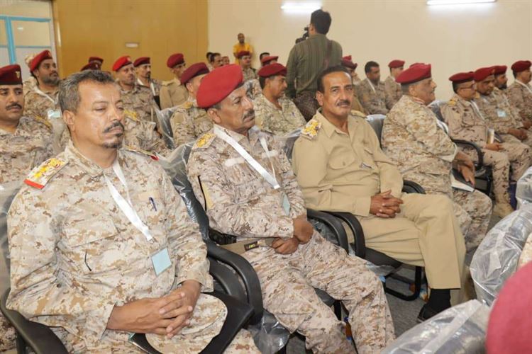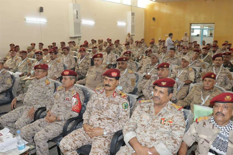 كان الحضور لأفتاً من القادة في بزتهم العسكرية ورتبهم وان اختلفت بشكل طفيف من اهم الحاضرين نائب رئيس هيئة الاركان العامة اللواء الركن أحمد البصر سالم والمستشار العسكري قائد القوى البحرية والدفاع الساحلي الفريق الركن بحري عبدالله سالم النخعي ورئيس هيئة العمليات المشتركة اللواء الركن صالح علي حسن وقائد القوات البرية اللواء علي البيشي أبو طاهر ومدير مكتب وزير الدفاع اللواء الركن عبدالحكيم موسى الشعيبي وقائد الشرطة العسكرية اللواء الركن محمد صالح الشاعري ورئيس هيئة التدريب اللواء محمد بن محمد الردفاني ورئيس هيئة القوى البشرية اللواء أحمد سالم المرزوقي وقائد محور الضالع قائد اللواء ٣٠ مدرع العميد الركن هادي العولقي وقائد محور ابين قائد اللواء الأول حماية رئاسية العميد الركن سند الرهوه وقائد عمليات محور الضالع رئيس المجلس الانتقالي بالمحافظة العميد عبدالله مهدي سعيد محافظ الضالع قائد اللواء ٣٣ مدرع اللواء الركن علي مقبل ورئيس اركان محور تعز القائم بأعمال قائد المحور العميد عبدالعزيز المجيدي وقائد محور باب المندب العميد عبدالغني الصبيحي وقائد محور العند العميد عبدالحكيم الشعيبي .