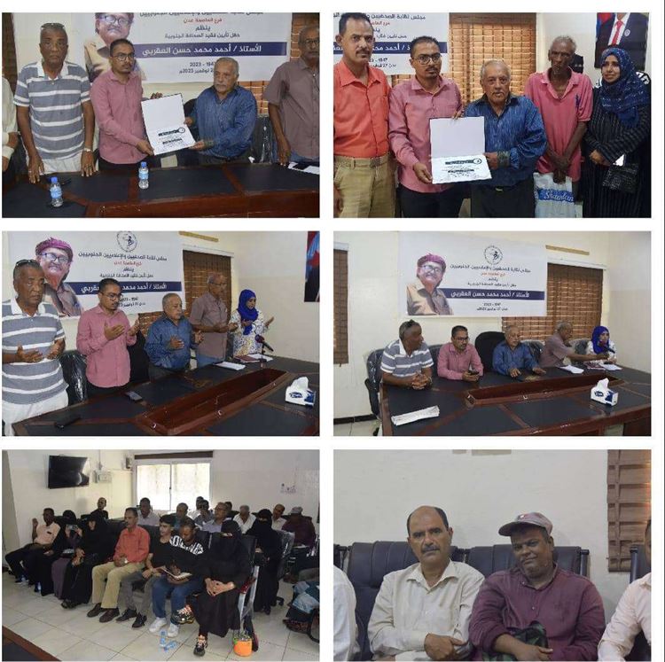 أقامت مجلس نقابة الصحفيين والإعلاميين الجنوبيين حفل تأبين فقيد الصحافة الجنوبية الصحفي الراحل أحمد حسن العقربي ، صباح اليوم بمقر نقابة الصحفيين الجنوبيين بحضور الأستاذ عيدورس باحشوان نقيب الصحفيين ورئيس مجلس نقابة الصحفيين والإعلاميين الجنوبيين فرع العاصمة عدن الاستاذ عبدالكريم الشعبي ونجل الفقيد الصحفي صقر أحمد حسن العقربي والأستاذ عبدالعزيز بن بريك مدير عام المكتبة الوطنية ونائب رئيس الهيئة العامة لكتاب ونخبة من الصحفيين والإعلاميين والكتاب وزملاء وأصدقاء وذوي الفقيد الذين شاركوا في هذه الاحتفالية وبحضور عدد من القنوات الإذاعية والفضائية .