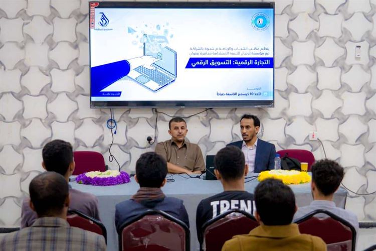 نظمها مكتب الشباب والرياضة بشبوة بالشراكة مع مؤسسة اوسان للتنمية المستدامة محاضرة بعنوان « التجارة الرقمية : التسويق الرقمي»