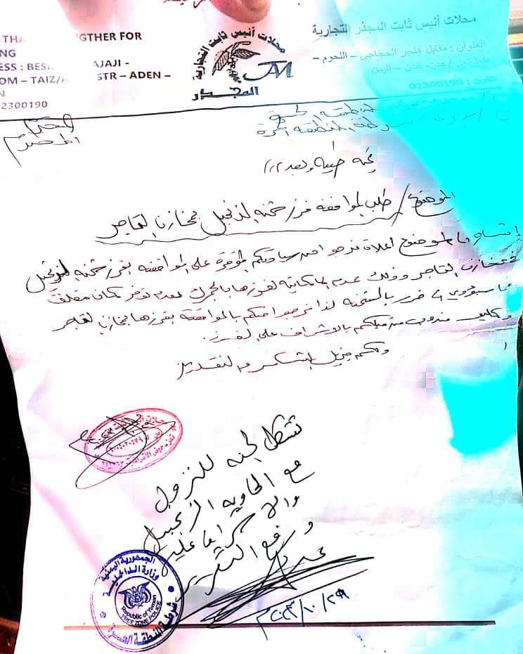 وفي يوم الاثنين الموافق 12/ديسمبر/ 2023م   نزلت اللجنة المكونة من جميع الجهات المعنية، هيئة المواصفات وجمارك المنطقة الحرة والحجر الزراعي بوزارة الزراعة والري ومندوب الأمن القومي والبحث وبحث المنطقة الحرة لفرز ومعاينة الشحنة (زنجبيل ) في المخازن والتحقق من سلامة المنتج بحسب الاتفاق السابق الذي على اساسة تم تحريزها للمخازن، وأقرت اللجنة بعد المعاينة ووفق محضر انه لاجدوى من فرزها وقررت اللجنة إتلاف الكمية.
