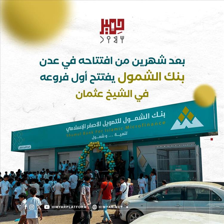 افتتح صباح اليوم الأحد الموافق 12 مايو 2024م. مدير عام مديرية الشيخ عثمان د. وسام معاوية يفتتح فرع بنك الشمول للتمويل الأصغر الإسلامي في الشيخ عثمان بالعاصمة عدن