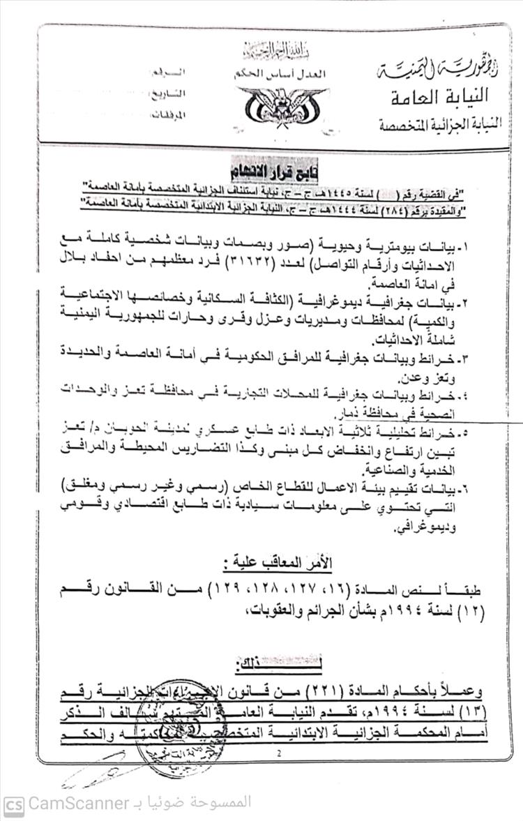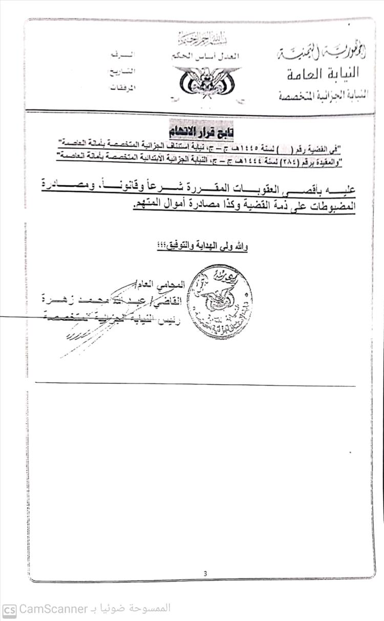 وبحسب مذكرة صادرة عن النيابة الجزائية المتخصصة التابعة للحوثيين، فقد صدر الحكم بإعدام عدنان الحرازي وهو صاحب شركة برودجي سيستمز.