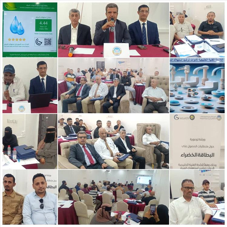 نظمت الهيئة اليمنية للمواصفات والمقاييس وضبط الجودة بالتسيق مع هيئة التقييس الخليجية صباح اليوم بالعاصمة عدن الندوة التعريفية الخاصة بمتطلبات الحصول على البطاقة الخضراء لأدوات ترشيد استهلاك المياه وبطاقة كفاءة الطاقة اليمنية للمكيفات.
