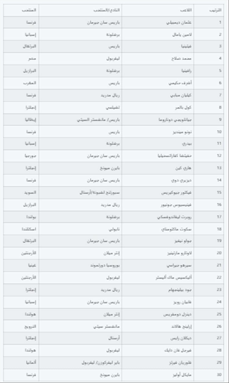 وحصل الدولي الفرنسي عثمان ديمبيلي مهاجم نادي باريس سان جيرمان، على جائزة الكرة الذهبية 2025، متفوقا على الدولي الإسباني لامين جمال لاعب برشلونة، وتلاهما الدولي البرتغالي فيتينيا لاعب خط وسط فريق باريس سان جيرمان في المرتبة الثالثة، ومن ثم النجم المصري محمد صلاح هداف فريق ليفربول الإنجليزي.