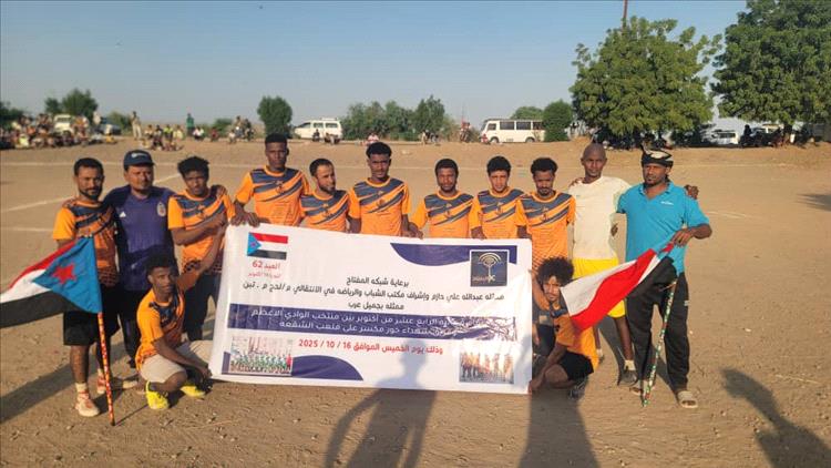 في أجواء وطنية مفعمة بالفخر والانتماء احتضن ملعب الشقعة عصر اليوم مباراة ودية جمعت منتخب الوادي الأعظم (زايدة، الشقعة، والعند بلحج) ومنتخب نجوم شهداء خور مكسر عدن وذلك احتفاء بالذكرى المجيدة لثورة 14 أكتوبر وسط حضور جماهيري غفير وعدد من الشخصيات الرسمية والرياضية البارزة.