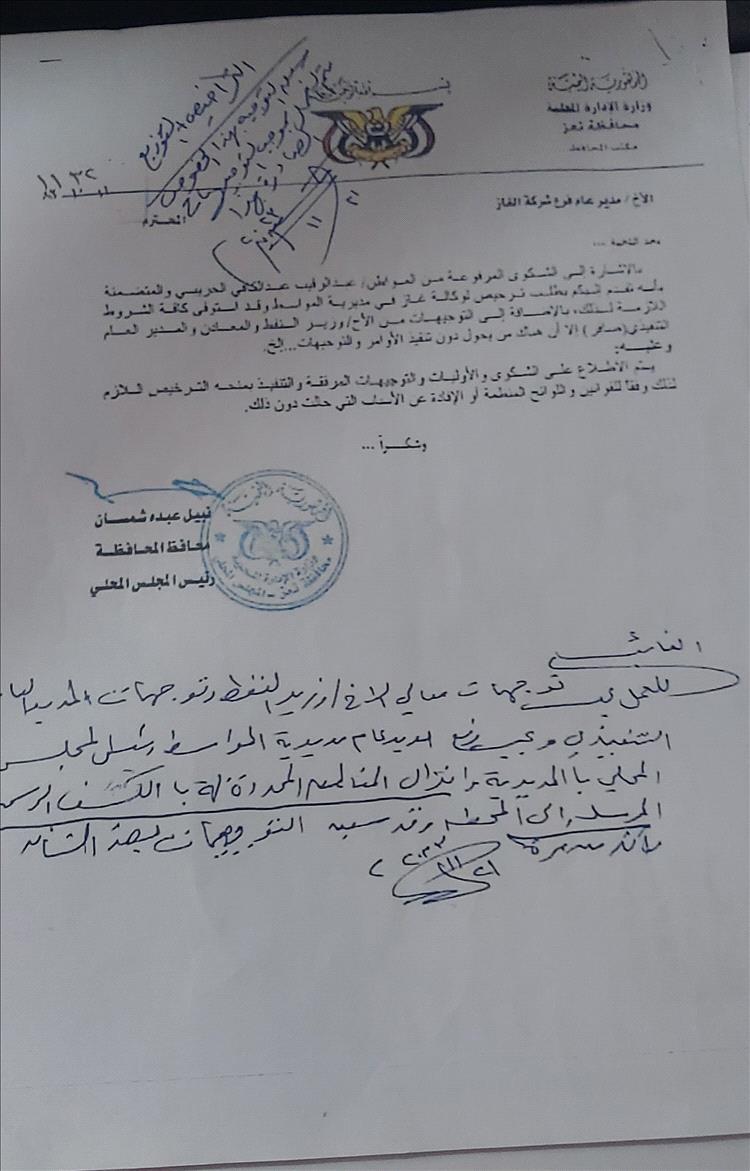 وكيل بيع غاز بتعز يشكو عرقلة عمله ويناشد بإنصافه