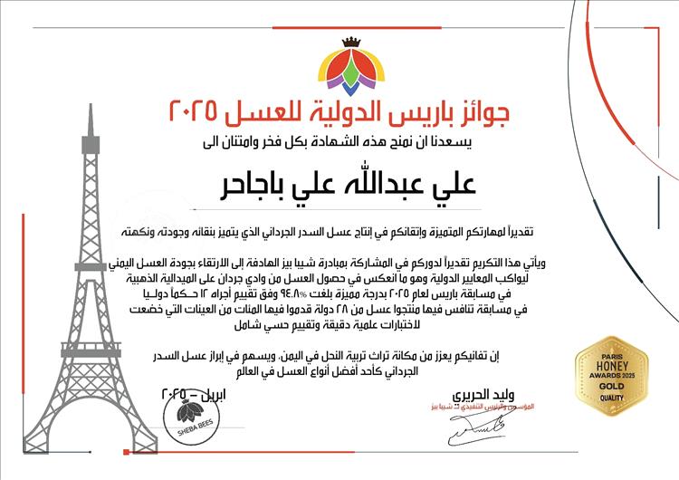 اختتم الشيخ مهدي باصهيب تصريحه قائلا : بهذه الروح الطموحة، تمضي شبوة بخطى واثقة نحو العالمية، حاملةً في يدها عسلها الذهبي، وفي الأخرى رؤية تنموية تسعى لتضع المحافظة في مصاف المحافظات الرائدة إنتاجًا وتصديرًا وتميزًا.