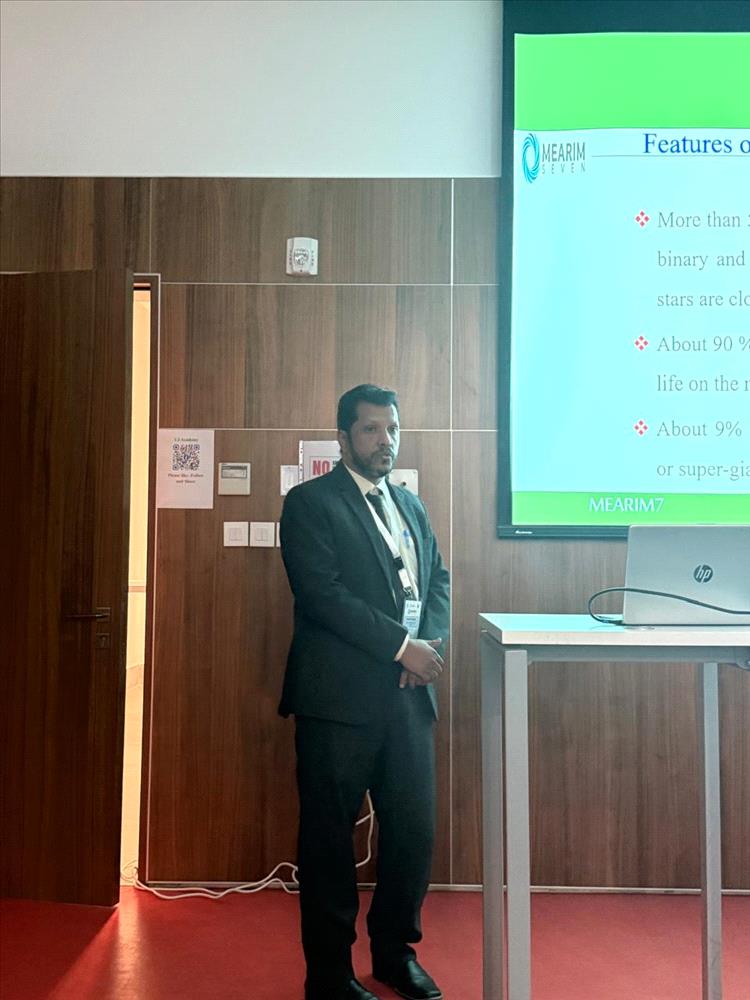 ومثّل جامعة المهرة في المؤتمر نائب رئيس الجامعة للدراسات العليا والبحث العلمي الدكتور سهيل جمعان مصدع، الذي قدّم ورقة علمية بعنوان "العناصر النجمية لنظام ثنائي قريب اعتماداً على أرصادات غايا"، نالت اهتمام المشاركين وأثرت جلسات المؤتمر بمضامينها العلمية.