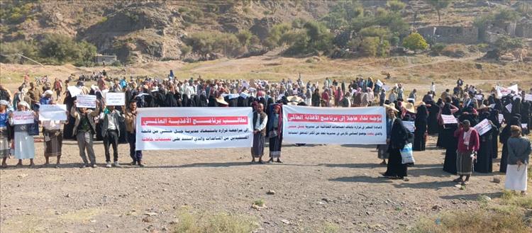 وطالب المحتجون برنامج الغذاء العالمي بإعادة النظر في قرار الاستبعاد بشكل عاجل، مشددين على أن المديرية تُعد من أكثر المديريات احتياجاً، حيث يتجاوز عدد سكانها 200 ألف نسمة، يعيش 68% منهم تحت خط الفقر.