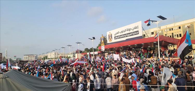شهدت ساحة العروض في خور مكسر، عصر الأحد، احتشادًا جماهيريًا واسعًا للمطالبة باستقلال الجنوب، وذلك عقب وصول وفد يافع إلى الساحة للمشاركة في الفعالية.