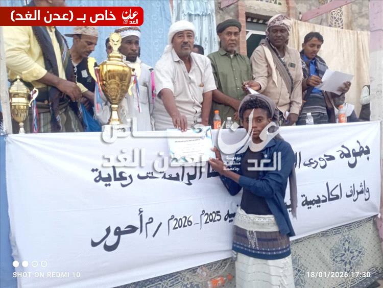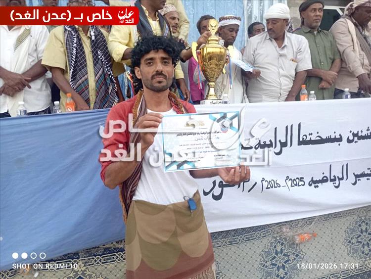 اختُتم عصر يوم الأحد الموافق 18 يناير 2026م الدوري الكروي للشباب والبراعم، الذي نظمته أكاديمية تيسير الرياضية في نسخته الرابعة بمديرية أحور، محافظة أبين، برعاية ودعم من أكاديمية تيسير، ممثلة برئيسها الكابتن محمد عوض تيسير.