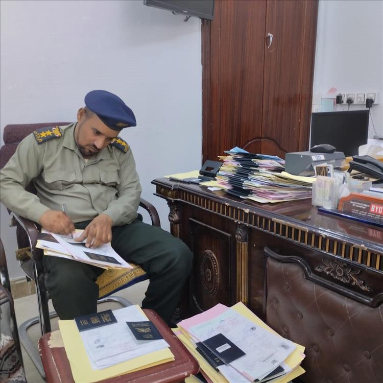 وتطرق بن طالب الى ان الفرع يوجد بها كميات جيدة من الجوازات استلمها من المركز الرئسي مايجعل الفرع يعمل بشكل سريع ويسهل خدمة المواطن بشكل جيد وفي نفس السياق قال ان الفرع يقدم اصدار الجواز عن بعد للمرضى والحالات الصحية الغير قادرة للحضور الى المصلحة بارسال مندوب من كادر المصلحة لاخذ البصمة والصورة وبشكل قانوني ويخفف من معاناة المواطن