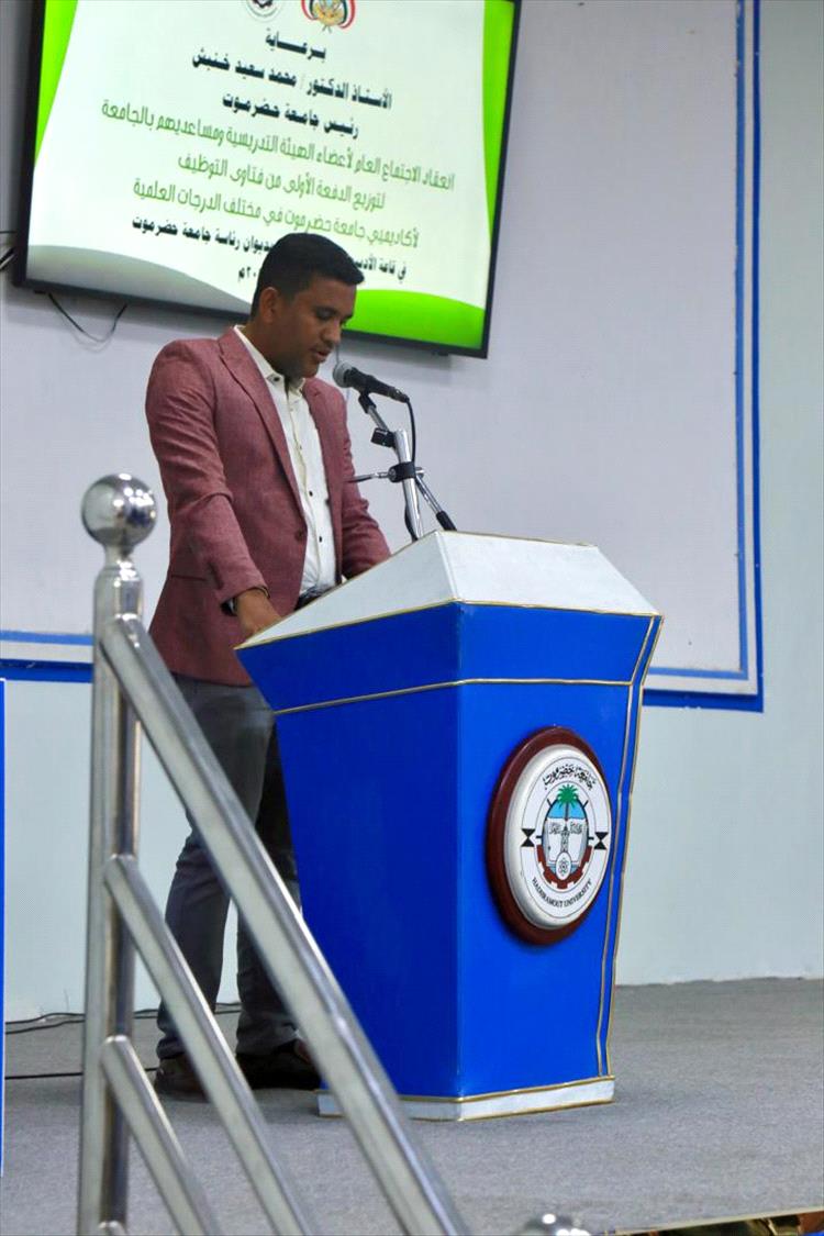 برعاية رئيس جامعة حضرموت أ.د. محمد خنبش، شهدت قاعة الأديب علي أحمد باكثير برئاسة الجامعة يوم الأربعاء، الاجتماع العام لأعضاء الهيئة التدريسية ومساعديهم، المخصص لتسليم الدفعة الأولى من فتاوى التوظيف للأكاديميين بمختلف درجاتهم العلمية، في خطوة تمثل ثمرة جهود دؤوبة استمرت لسنوات.
