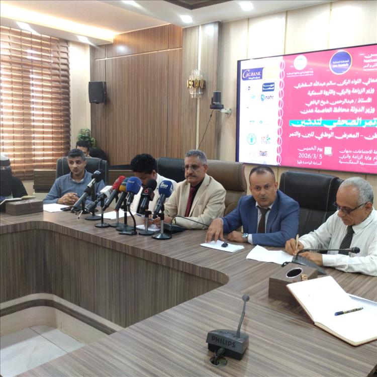برعاية معالي اللواء الركن سالم عبدالله السقطري، وزير الزراعة والري والثروة السمكية، والأستاذ عبدالرحمن شيخ، وزير الدولة ومحافظ محافظة عدن، أُقيم في قاعة وزارة الزراعة بالعاصمة المؤقتة عدن مؤتمر صحفي للإعلان عن انطلاق المعرض الوطني للبن والتمر تحت شعار “ثروة وطن”.