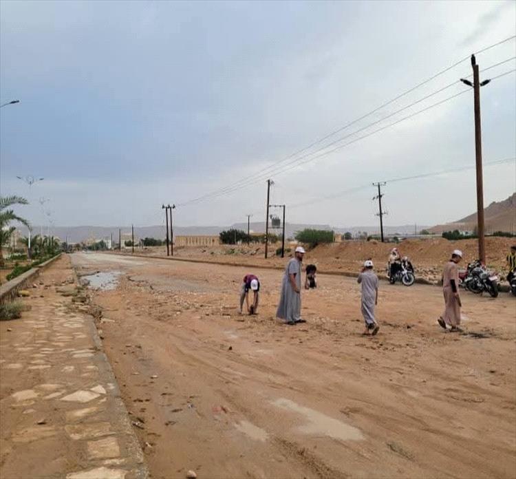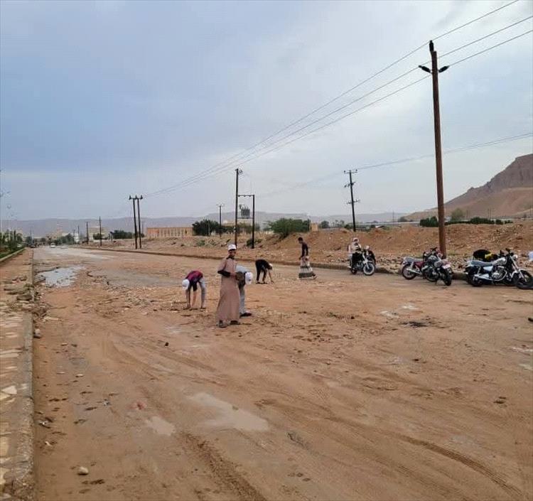 في ثاني أيام العيد.. مبادرة أنت وطن تواصل عطاءها بإزالة آثار الأمطار وتسهيل حركة السير بمدينة سيئون
