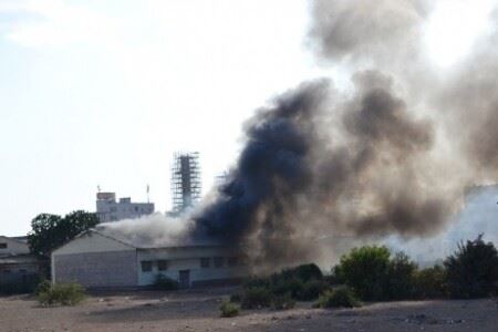 باحة احد هناجر مصنع الغزل والنسيج بعدن بعد ان تم تدميره بالكامل
